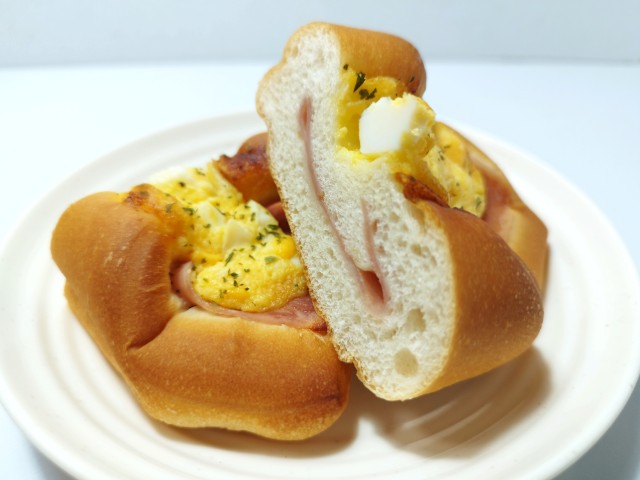 ハムを包んだ生地にたまごとマヨネーズを合えたソースを絞り焼き込んだ惣菜パンです。