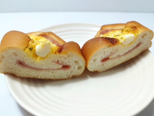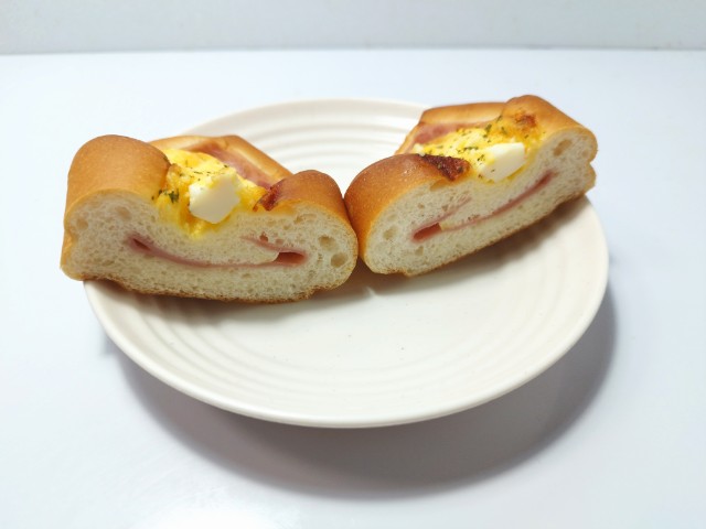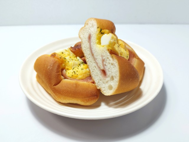 ハムとたまごサラダを使った惣菜パンです。以前の購入が2025年8月5日発売だったので、約半年近く経っていますが、価格は変わっていません。ただ商品名がふんわり食感ハムたまごからふんわりハムたまごに変わっています。そんなふんわりハムたまごですが、生地は商品名の通りのふんわりとした食感と小麦の風味で、これだけでも美味しく食べ進められます。生地の中にはハム、トッピングにはたまごとマヨネーズを和えたたまごサラダがのっていて、ハムの塩味とたまごの甘味、マヨネーズの酸味があって、間違いのない美味しさです。大きさは普通の惣菜パンくらいで、小腹が空いた時や主食にあと一品追加したい時にピッタリです。ぜひふんわりハムたまごを食べてみてください。