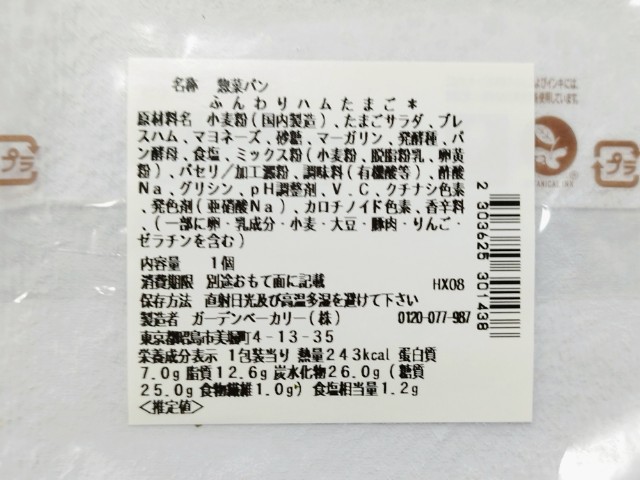 以前に購入した商品は2025年8月5日発売で商品名がふんわり食感ハムたまごでした↓