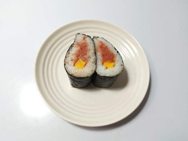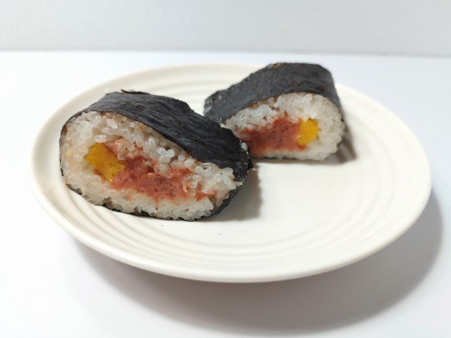 まぐろたたきと錦糸玉子を使ったサンド寿司です。以前の購入が2025年12月9日発売だったので、約3ヶ月近く経っていますが、価格が338円(税込365円)から348円(税込375円)へと変わっています。そんなサンド寿司ですが、まぐろたたきはまぐろの味わいと昆布だしの旨味、醤油の風味があって、ご飯が進む一品になっています。玉子焼きは味のアクセントといった感じで、まぐろたたきの美味しさをさらに引き立てています。酢飯のやさしい酸味と海苔のしっとりとした食感のバランスもよく、最後のひと口まで美味しく食べられます。大きさは普通のおむすびサイズくらいなので、小腹が空いた時や主食にあと一品追加したい時にピッタリだと思います。ぜひまぐろたたきのサンド寿司を食べてみてください。