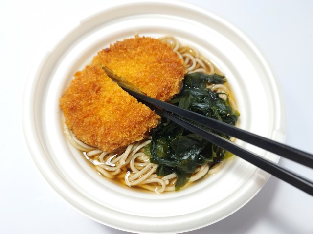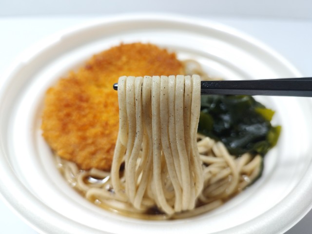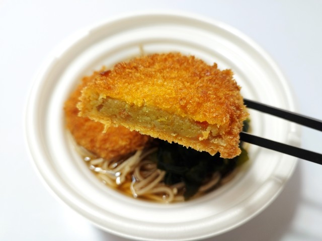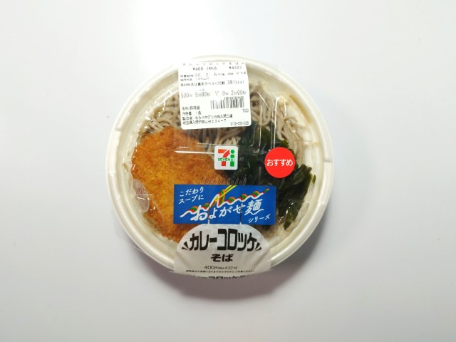 セブンイレブンの今週の新商品「カレーコロッケそば」を食べてみました。