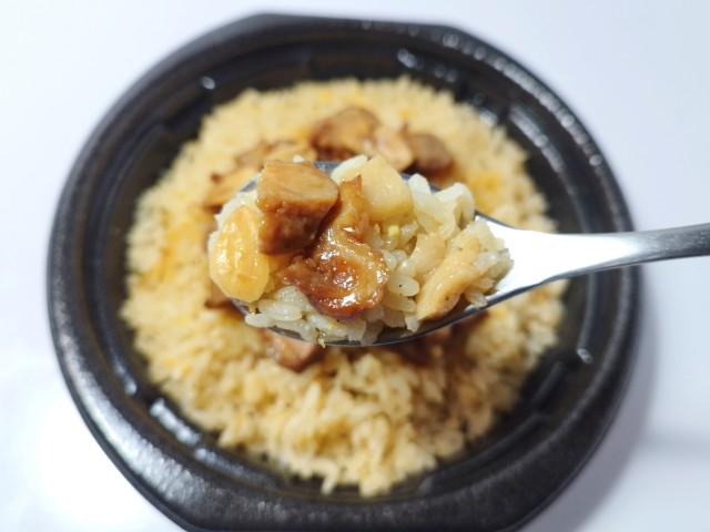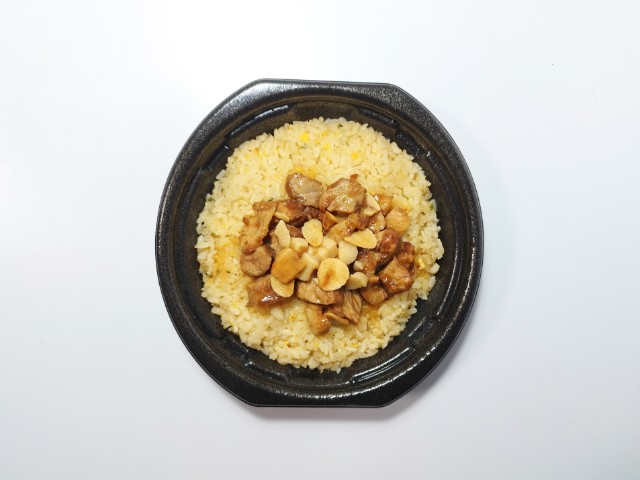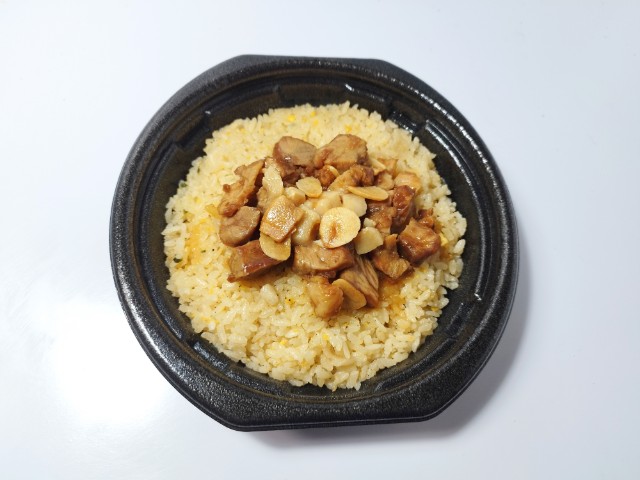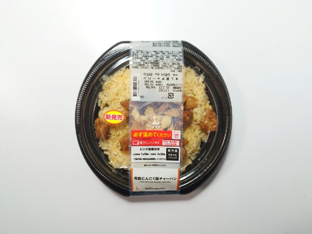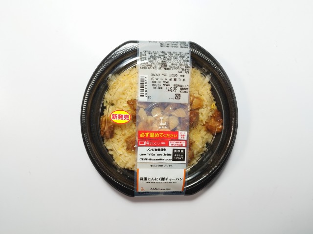 ローソンの商品「背脂にんにく豚チャーハン」を食べてみました。