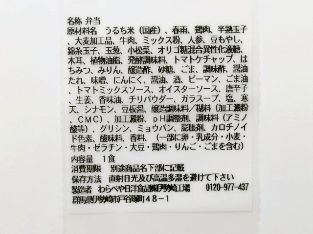 熱量:446kcal、たんぱく質:15.0g、脂質:13.3g、炭水化物:68.5g(糖質:64.7g、食物繊維:3.8g)、食塩相当量:2.4g