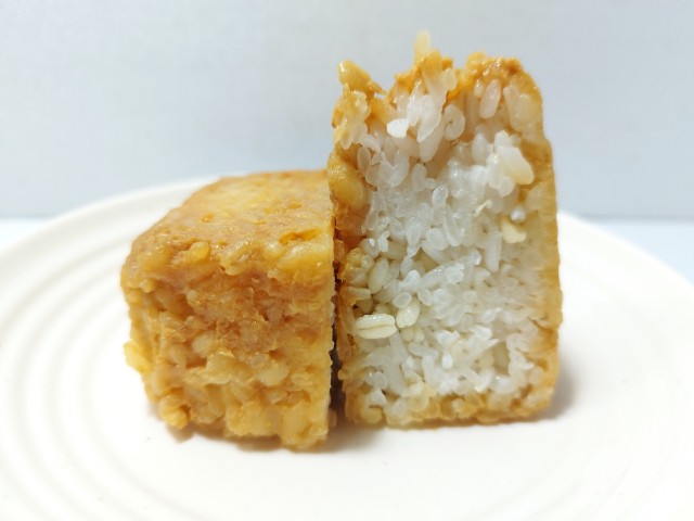 味噌を塗ったおむすびです。以前の購入が2026年2月10日発売だったので、約1ヶ月近く経っていますが、価格は変わっていません。そんな味噌むすびですが、おむすびのまわりに塗られた味噌は味噌の旨味とコクがあって、ご飯ともよく合います。たっぷりと味噌が塗られているので、濃い味付けに見えますが、見た目以上にやさしい味わいになっています。また、ご飯にはもち麦が入っていて、プチプチとした食感が良いアクセントになっています。大きさは普通のおむすびサイズで、朝食や小腹が空いた時にピッタリです。ぜひ味噌むすびを食べてみてください。