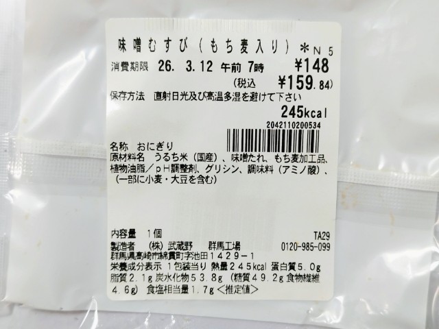 セブンイレブンの商品「味噌むすび(もち麦入り)」を食べてみました。
