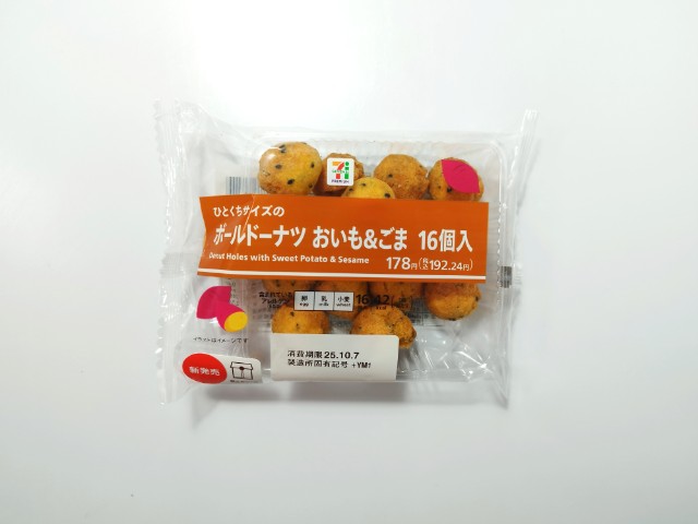 セブンイレブンの今週の新商品「7P ひとくちボールドーナツ おいも&ごま」を食べてみました。