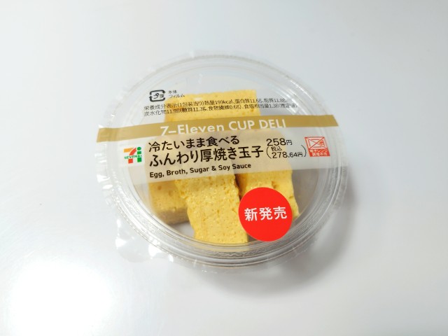 セブンイレブンの商品「冷たいまま食べる ふんわり厚焼き玉子」を食べてみました。