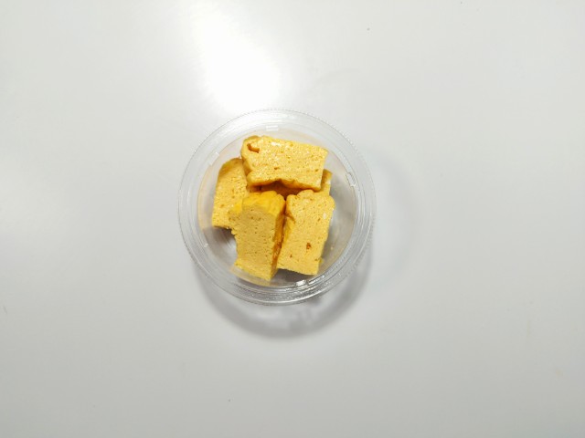 冷たいまま食べる玉子焼きです。シンプルな内容ながらカップデリという手軽さもあって買ってみました。そんなふんわり厚焼き玉子ですが、玉子焼きふんわりとした食感だしの旨味ほどよい甘味があって、間違いのない美味しさです。正直、特出するものはありませんが、ハズレもない惣菜といった印象です。カップデリなので内容量は多くはありませんが、おつまみおかずをもう一品追加したい時にピッタリの商品です。ぜひふんわり厚焼き玉子を食べてみて下さい。