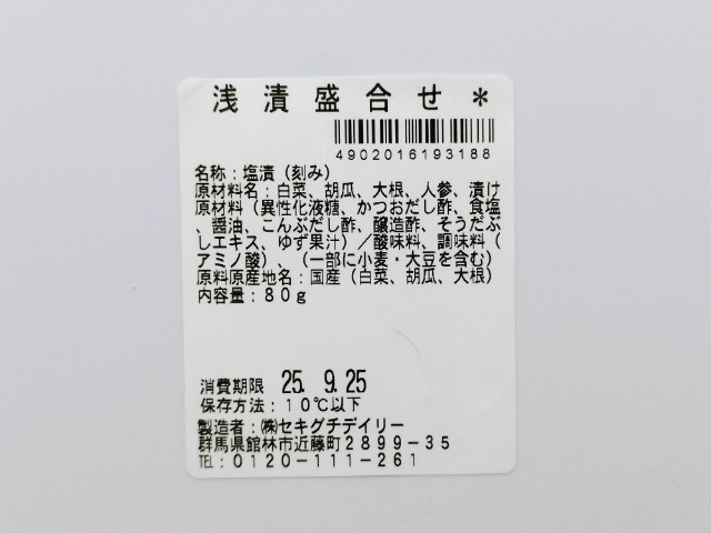大根きゅうり白菜が入った浅漬です。以前の購入が2025年3月4日発売なので約7ヶ月以上経っていますが、価格は変わっていません。ただ商品名が7プレミアム 浅漬盛合せから浅漬盛合せに変わっています。以前の商品は、ほぼ通年販売の商品だったので、店頭で見かけたり、食べた事がある方も多いと思います。今回、新商品ではありますが、正確にはリニューアルというのが正しいのかもしれません。そんな浅漬盛合せですが、大根きゅうり白菜3種類が入っていて、大根ほのかな甘酸っぱさきゅうり大根だしの旨味があって、それぞれの食感も楽しむ事が出来ます。シンプルな味わいながら飽きのこない味といった印象だと思います。内容量は一人分にちょうどよく、おつまみおかずをもう一品追加したい時にピッタリの商品です。ぜひ浅漬盛合せを食べてみて下さい。