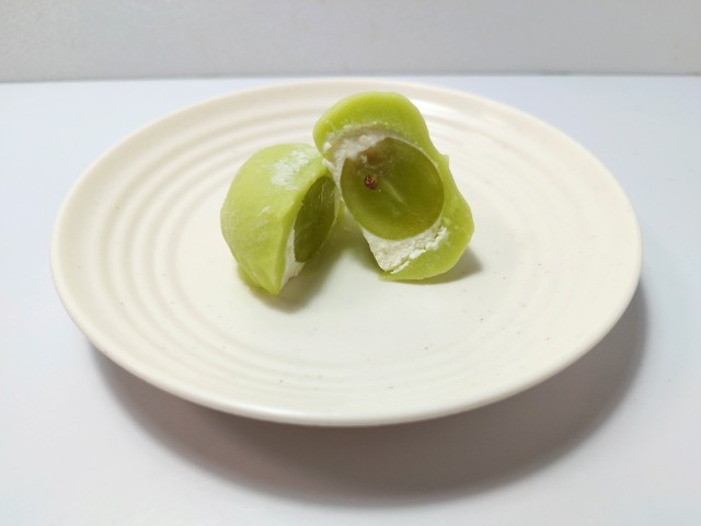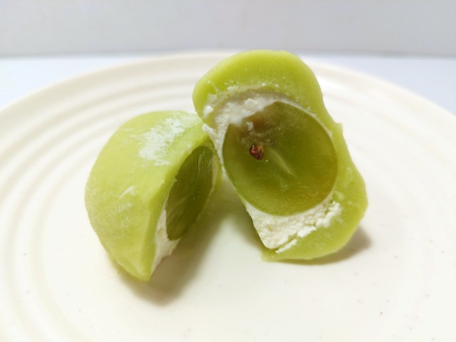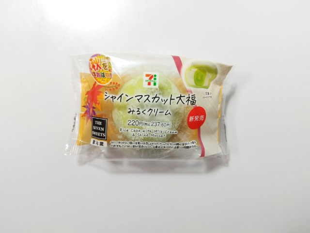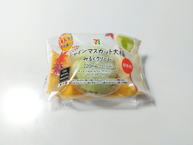 セブンイレブンの今週の新商品「まるっと一粒 シャインマスカット大福」を食べてみました。