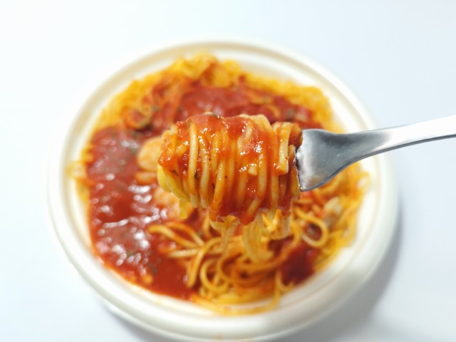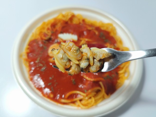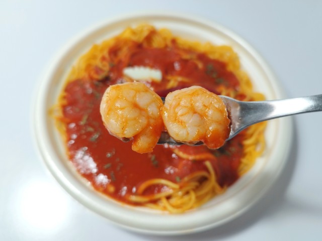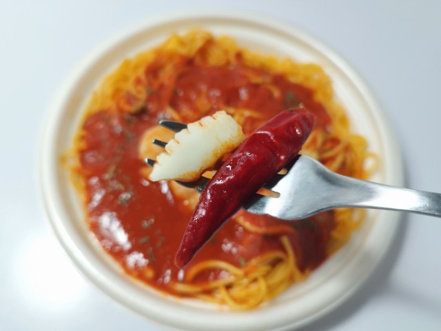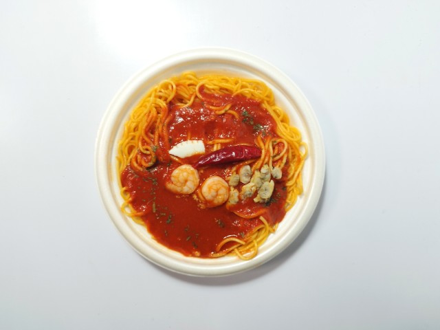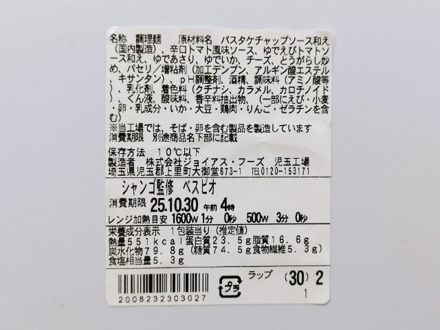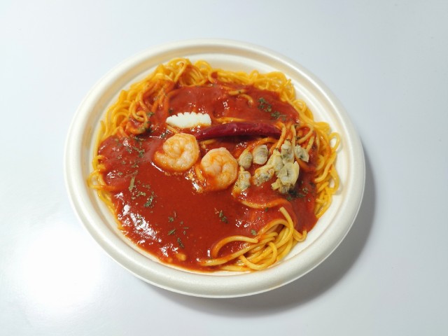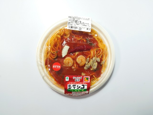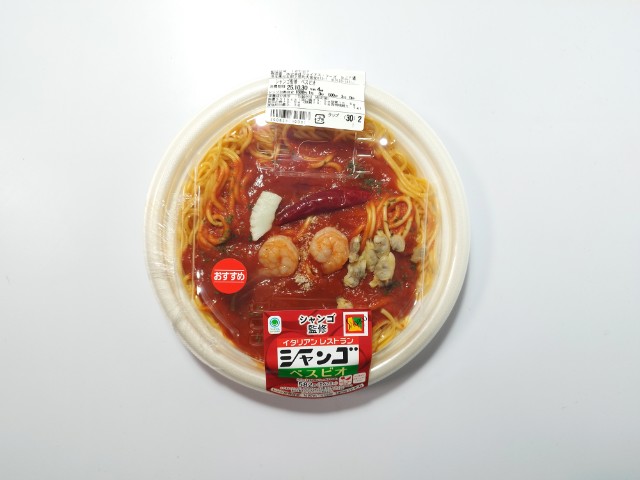シャンゴ監修のベスビオです。以前の購入が2025年9月16日発売なので約1ヶ月以上経っていますが、価格は変わっていません。ちなみにベスビオをネット調べたところ、イタリアのナポリ湾岸にある同名の火山の名前に由来するらしく、群馬県高崎市のご当地パスタメニューだそうで、魚介の旨味が詰まったトマトソースにニンニクと唐辛子の辛みが加わった激辛のトマトソースパスタは、高崎市に本店を置くイタリアンレストラン「シャンゴ」が発祥し、普及させたとされているそうです。そんなベスビオですが、ソースはトマトの酸味と唐辛子の辛味、にんにくの風味があって、クセになってしまう美味しさです。この商品の一番の特長ともいえる生パスタはぷりぷりとした食感で、トマトソースとの相性抜群です。具材には海老やあさり、いかといった海鮮具材を始め、唐辛子やパセリなどものっていて、それぞれの味や食感を楽しめます。内容量は1食分にちょうどよく、お腹も満たされます。ぜひベスビオを食べてみて下さい。