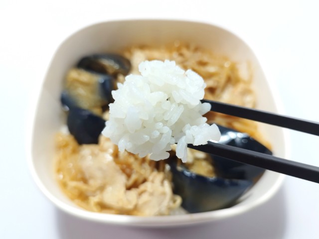 令和3年産政府備蓄米を使用しております。ふんわりした食感の豚肉,揚げナスに香味だれを加えた、やみつきになる一品です。