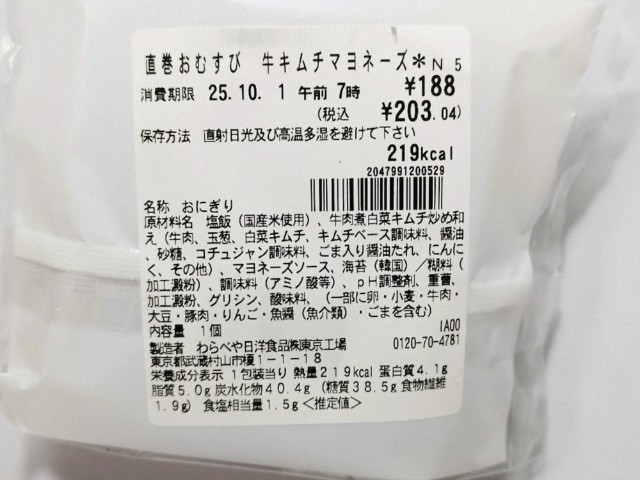 直巻おむすび 牛キムチマヨネーズ【セブンイレブン】相性抜群の組み合わせです!!