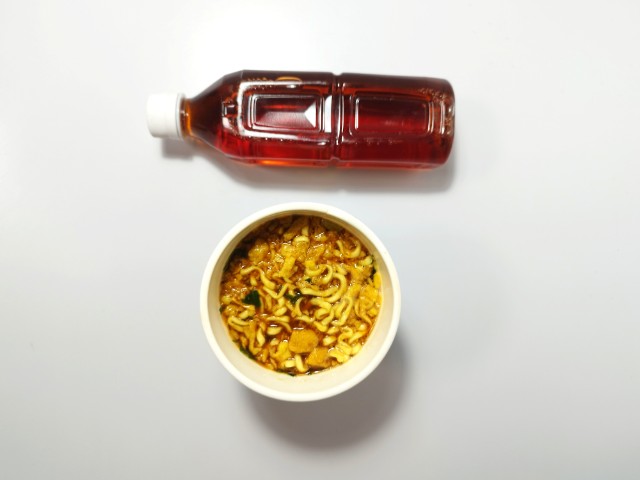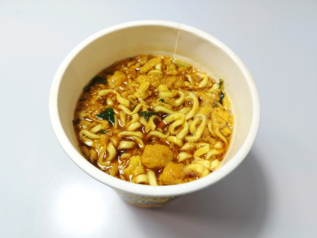 すず鬼監修カップ麺です。ファミリーマートでは9月16日から普通の月見じゃモノ足りない!「月見背徳メシ」を開催していて、今回の商品もその対象商品の一つになっています。ちなみに以前にも【「元祖スタミナ満点らーめん すず鬼」監修】背徳ニンニク醤油(2025年1月28日発売)がありましたが、今回は背徳月見企画に併せて、タマゴ入り期間限定商品になっています。そんなカップ麺ですが、スープ豚の旨味背脂のコクニラの風味を感じる濃厚な味わい醤油スープで、クセになってしまう美味しさです。もちっとした食感ワシワシ麺で、濃厚醤油スープにも負けていません。そして今だけタマゴ入りとパッケージにも書かれている通り、ポイントは具材であるタマゴで、たまごのなめらかな味わい濃厚醤油スープと絡む事でまた違った味わいを楽しめます。内容量は1食分にちょうどよく、お腹も満たされます。ぜひ背徳ニンニク醤油カップ麺を食べてみて下さい。