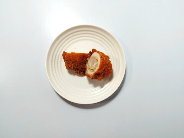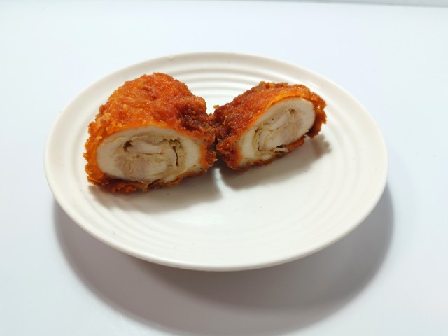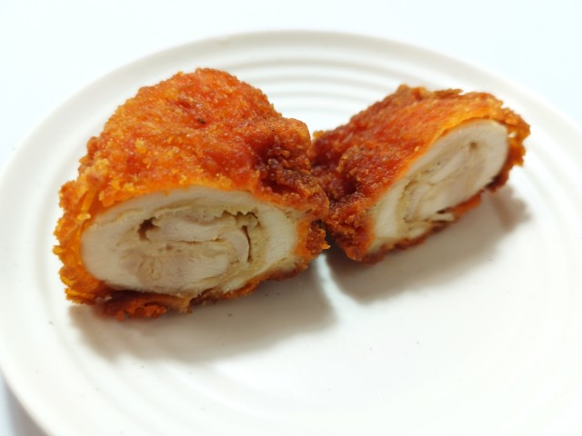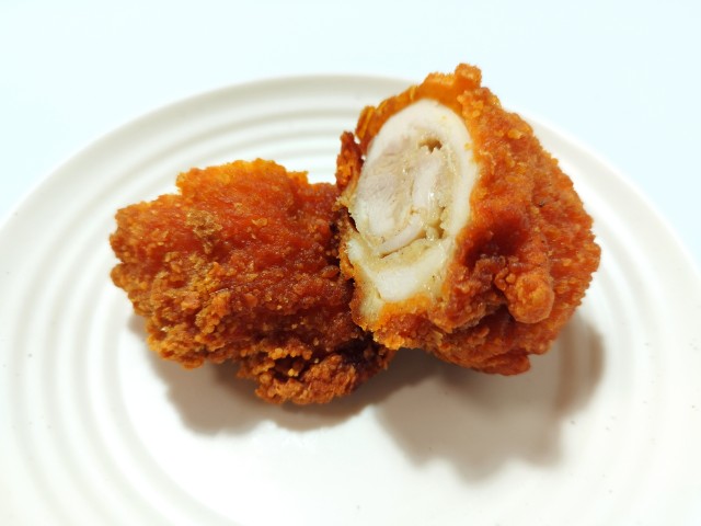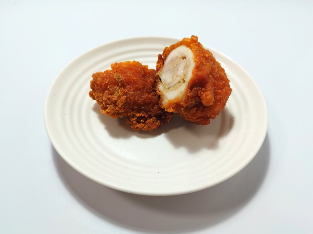鶏もも肉を使ったフライドチキンです。以前にまんまる鶏(2025年7月29日発売)がありましたが、今回は七味を使った新フレーバーになっています。ちなみにまんまる鶏は鶏もも肉の皮を剥いで、手作業で丸めて肉汁を閉じ込めたフライドチキンで、まんまるの言葉通り、丸めて作られているのが特長です。そんなまんまる鶏ですが、鶏の旨味とジューシーな味わいで、ジュワっと溢れてくる肉汁がたまりません。衣はサクッとした食感と七味の辛味があって、鶏肉ともよく合います。激辛といった感じではありませんが、後からジワジワと辛味がやってくるので、辛いのが苦手な方は注意が必要だと思います。大きさは一人分にちょうどよく、おやつやおつまみにピッタリです。ぜひまんまる鶏を食べてみて下さい。