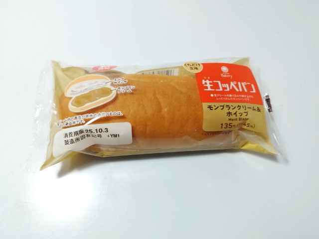 ファミリーマートの今週の新商品「生コッペパン(モンブランクリーム&ホイップ)」を食べてみました。