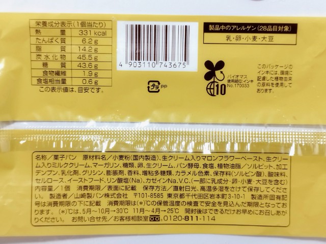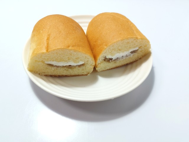 モンブランクリームミルクホイップが入った生コッペパンです。菓子パン生コッペパン二つのクリームを組み合わせて発売することが多く、今回はモンブランクリームミルクホイップ組み合わせになっています。そんな生コッペパンですが、生クリームを加えたパン生地しっとりとした食感くちどけの良さで、これだけでも美味しく食べ進められます。中にはモンブランクリームミルクホイップが入っていて、モンブランクリームなめらかな食感栗の味わいミルクホイップふんわりとした食感ミルクの風味で、相性抜群の組み合わせになっています。甘過ぎないのも嬉しいポイントで、甘いのがちょっと苦手な方も食べやすい菓子パンだと思います。大きさは普通の菓子パンくらいで、おやつ小腹が空いた時にピッタリです。ぜひモンブランクリーム&ホイップ生コッペパンを食べてみて下さい。