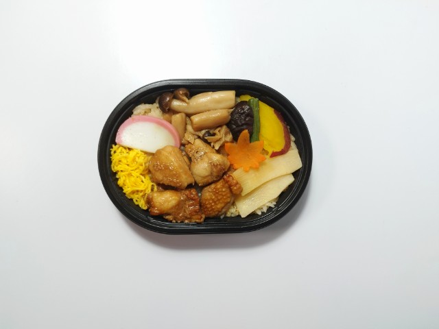 香ばしい鶏肉と旬の具材が入った、小さいながらも満足感のあるお弁当です。