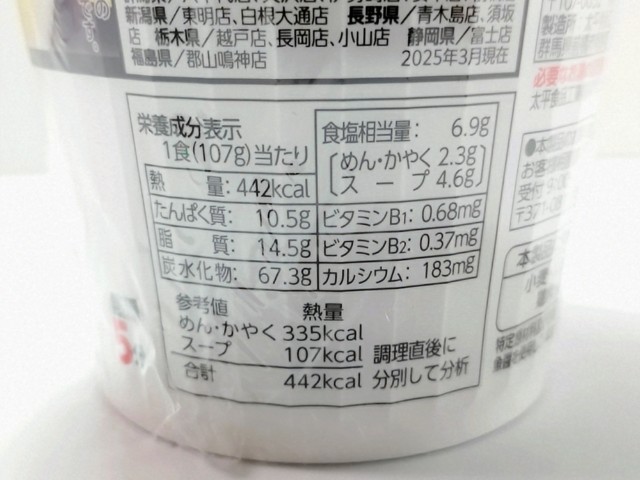 熱量:442kcal、たんぱく質:10.5g、脂質:14.5g、炭水化物:67.3g、食塩相当量:6.9g