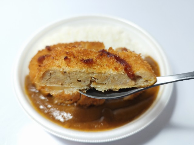 チキンメンチカツがのったカレーです。以前の購入が2025年9月30日発売だったので、約5ヶ月近く経っていますが、価格が580円(税込626.40円)から630円(税込680.40円)に変わっています。そんなチキンメンチカツカレーですが、カレーソースほどよい辛味スパイスの風味があって、ご飯がどんどんと進みます。チキンメンチカツ鶏の旨味ジューシーな味わいで、間違いのない美味しさです。特にチキンメンチカツ普通のメンチカツに比べて油のしつこさがないので、濃厚な味わいのカレーとも合わせやすく、最後のひと口まで飽きることなく食べられます。内容量は1食分にちょうどよく、お腹も満たされます。ぜひチキンメンチカツカレーを食べてみてください。