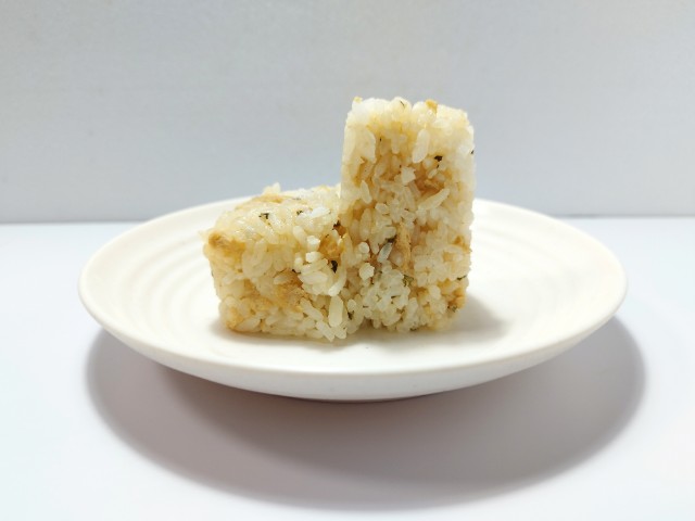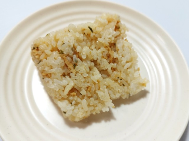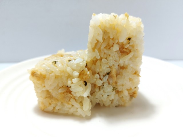 油揚げや醤油ダレを混ぜ込んだきつねおむすびです。以前にたぬきおむすび(2025年9月2日発売)がありましたが、今回はきつねおむすびになっています。そんなきつねおむすびですが、ご飯は油揚げの味わいや醤油ダレの旨味、ゆず七味のピリッとした辛味があって、間違いのない美味しさです。特に油揚げのジューシーな味わいはご飯ともよく合います。個人的には辛味はほとんど感じられませんでしたが、パッケージの左下に小さく、辛みの苦手な方はご注意ください。と書かれているので、辛いのが苦手な方は食べる時は注意した方が良いと思います。大きさは普通のおむすびサイズで、小腹が空いた時や主食にあと一品追加したい時にピッタリです。ぜひきつねおむすびを食べてみて下さい。