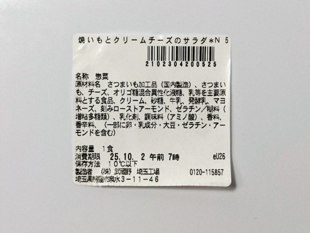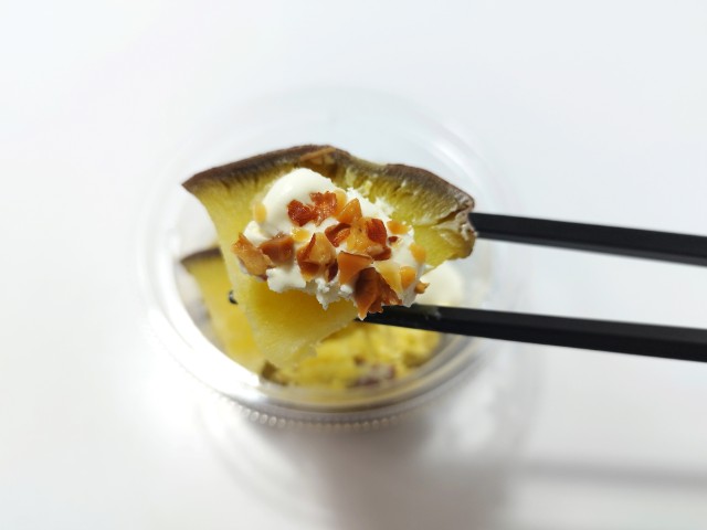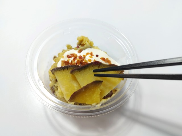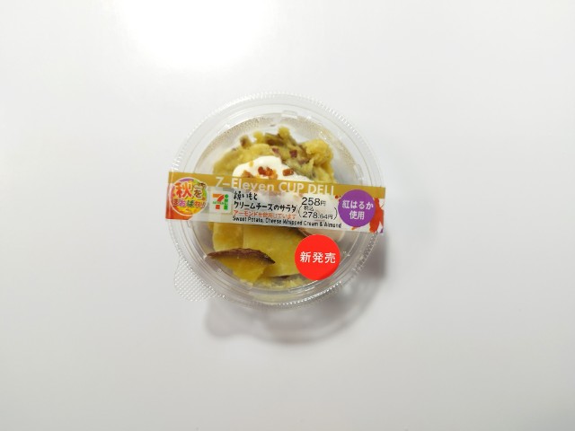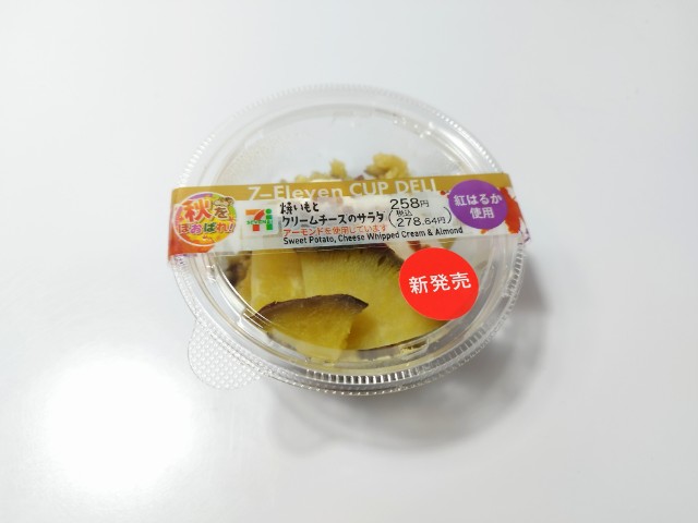 セブンイレブンの今週の新商品「焼いもとクリームチーズのサラダ」を食べてみました。