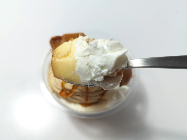 セブンイレブンの商品「プリンケーキパフェ 栗三昧」を食べてみました。