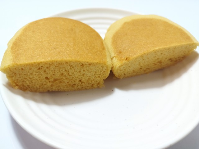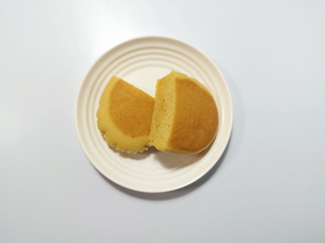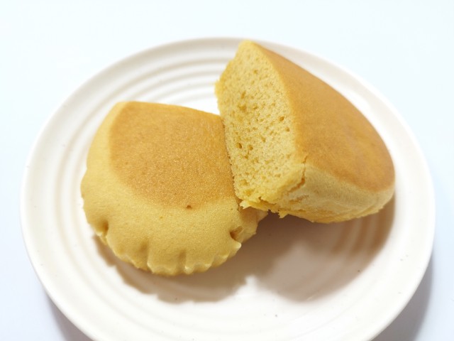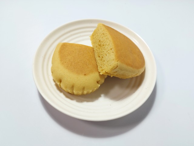 和栗あんを使った蒸しケーキです。シンプルな見た目ながら焼き栗風蒸しケーキの商品名に惹かれて買ってしまいました。そんな焼き栗風蒸しケーキですが、生地ふんわりとした食感栗の風味やさしい甘味があって、間違いのない美味しさです。焼き栗のほのかな香りはしていましたが、実際に食べるとより焼き栗の風味を楽しめると思います。若干、生地が口の中に残って飲み込みづらさがあるので、飲み物と一緒に食べるのがオススメです。大きさは普通の菓子パンサイズで、おやつ小腹が空いた時にピッタリです。ぜひ焼き栗風蒸しケーキを食べてみて下さい。