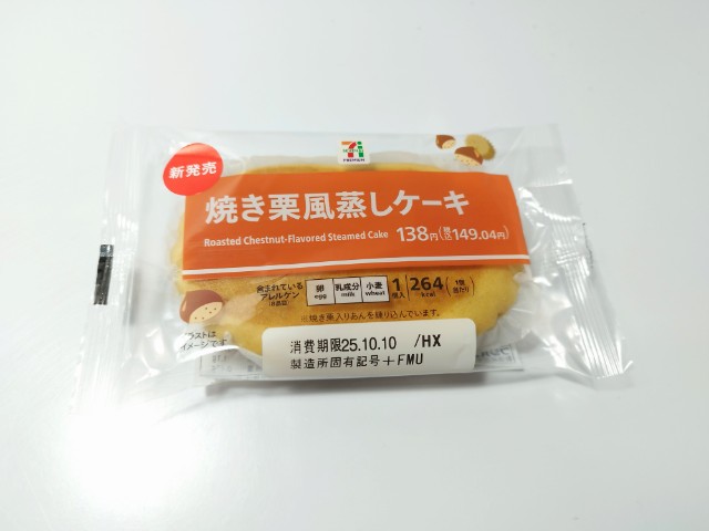セブンイレブンの今週の新商品「7P焼き栗風蒸しケーキ」を食べてみました。