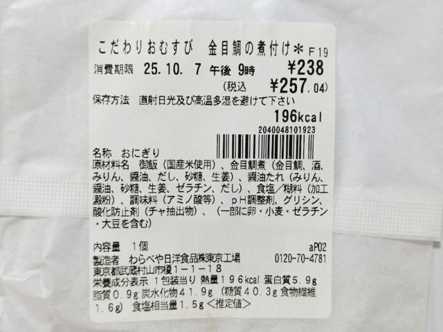 セブンイレブンの今週の新商品「こだわりおむすび 金目鯛の煮付け」を食べてみました。