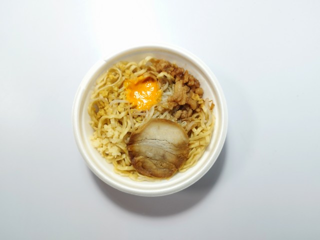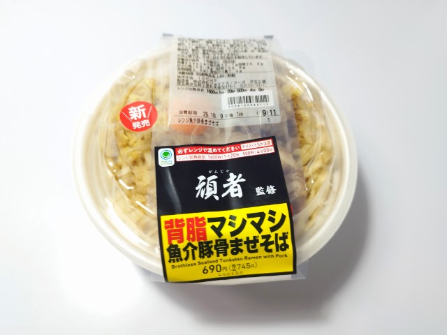 ファミリーマートの今週の新商品「【名店監修だから本格的!うまい麺!】頑者監修 背脂マシマシ魚介豚骨まぜそば」を食べてみました。