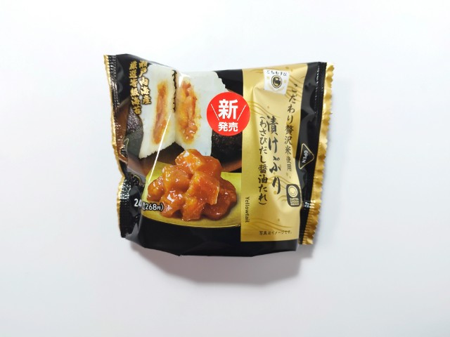 漬けぶりを使ったおむすびです。以前に【北海道・関東】ごちむすび 漬け真鯛(ごま醤油たれ)(2025年7月8日発売)がありましたが、今回はぶりになっています。そんなおむすびですが、漬けぶりはぶりの味わいと醤油ダレの旨味があって、ご飯が進む一品になっています。ポイントは醤油ダレに入っているわさびで、わさびの風味がぶりの臭みを感じさせず、さっぱりとした味わいにしてくれます。ご飯はふっくらとした食感とほのかな甘味があって、中具とのバランスも良いです。大きさは普通のおむすびサイズで、小腹が空いた時や主食にあと一品追加したい時などにピッタリです。ぜひ漬けぶりのごちむすびを食べてみて下さい。