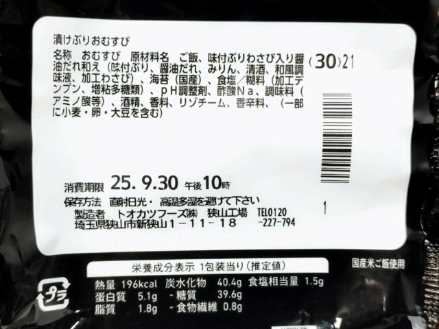 ファミリーマートの商品「ごちむすび 漬けぶり(わさびだし醤油たれ)」を食べてみました。