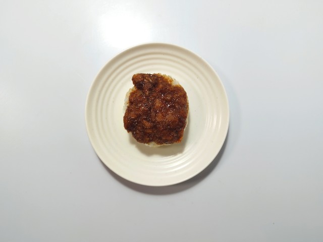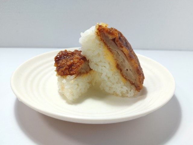ボリュームのあるチキンカツをマスタード入りソースで味付けし、おむすびにしました。ご飯とカツの間にチーズソースを挟んだ、やみつきになる味わいです。
