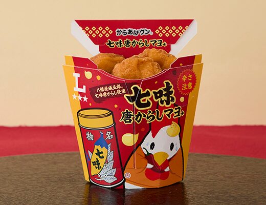 八幡屋礒五郎様の七味唐からしを使用したからあげクン。