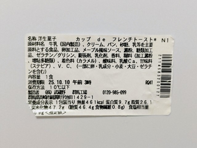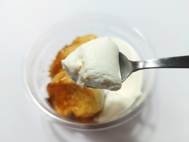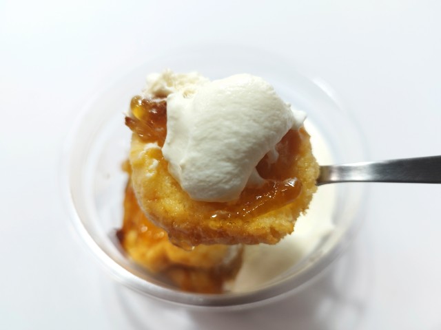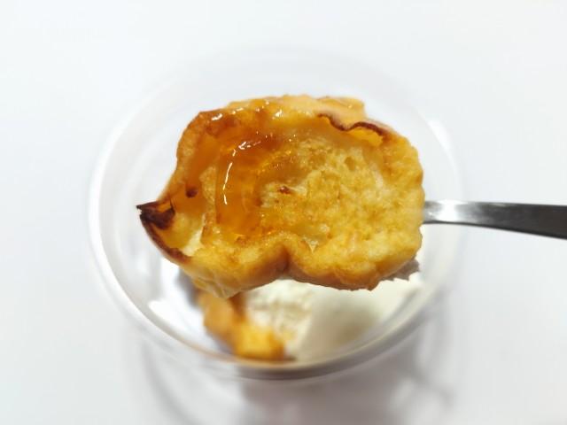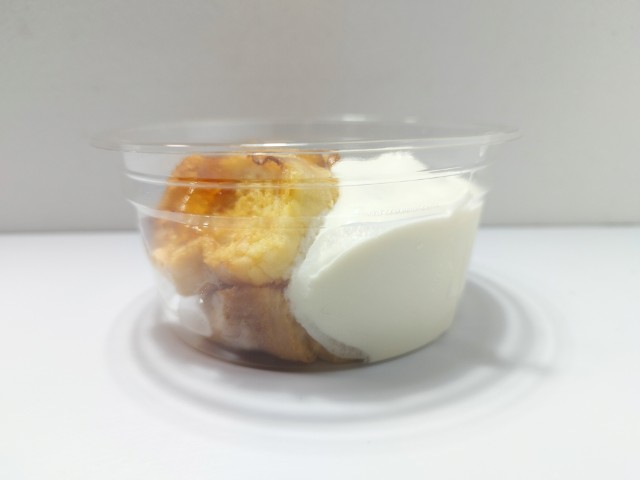 カップに入ったフレンチトーストです。以前にカップdeラスク(ホイップ)(2025年8月12日発売)がありましたが、今回はフレンチトーストになっています。そんなカップdeフレンチトーストですが、フレンチトーストはしっとりとした食感とたまごの風味、メープルの甘味で、フレンチトーストだけでも美味しく食べ進められます。ホイップクリームはふんわりとした食感とミルクの風味で、フレンチトーストの美味しさをさらに引き立ててくれます。内容量は一人分にちょうどよく、おやつや食後のデザートにオススメです。ぜひカップdeフレンチトーストを食べてみて下さい。