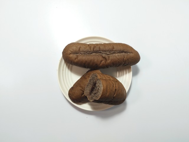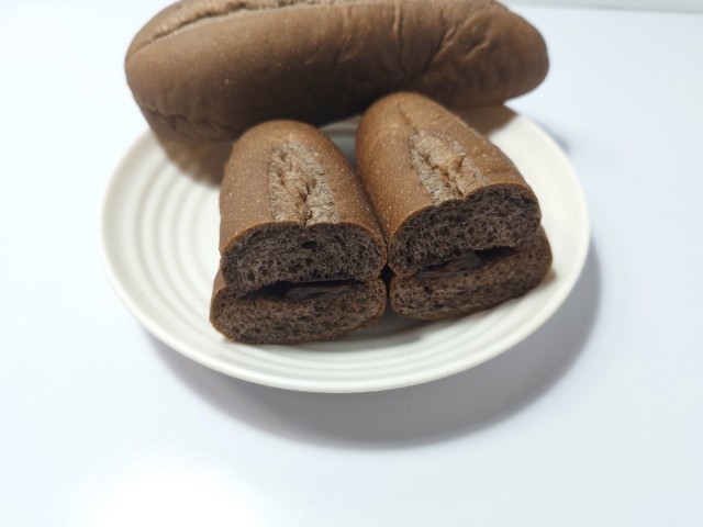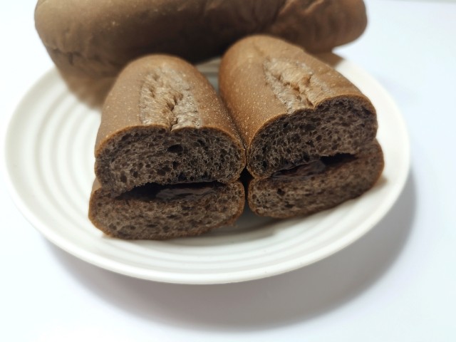 チョコクリームを挟んだフランスパンです。見た目ではフランスパンと分からず、食べた時にフランスパンというのが分かりました。そんなショコラサンドですが、パン生地はひきのある食感とココアの風味で、安定の美味しさです。中のチョコクリームはなめらかな食感とチョコの甘味で、生地とのバランスも良いです。チョコクリーム自体はたっぷりといった感じではないので、甘いのがちょっと苦手な方にも食べやすいと思います。2個入ですが、1個は普通のコッペパンの一回り小さいくらいなので、一人でも普通に食べ切れます。もちろんシェアするにもピッタリです。ぜひショコラサンドを食べてみて下さい。