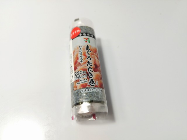 セブンイレブンの今週の新商品「手巻寿司 まぐろたたきわさび醤油巻」を食べてみました。