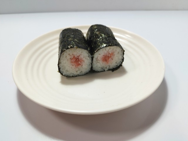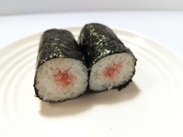 まぐろたたきを使った手巻寿司です。今回の商品は茨城県、栃木県、群馬県、埼玉県と販売地域が狭いですが、今回は同時発売にて手巻寿司 まぐろたたきわさび醤油巻(2025年10月7日発売)も出ていて、こちらは北海道、東北、埼玉県、千葉県、東京都、神奈川県、甲信越、岐阜県、愛知県、三重県、近畿、中国、四国、九州と広い範囲で発売されています。そんな手巻寿司ですが、具材のまぐろたたきは、まぐろの旨味となめらかな食感で、酸味の効いた酢飯との相性抜群です。また、まぐろたたきに和えられいるわさび醤油が、まぐろたたきの美味しさをさらに引き立てています。大きさは普通の手巻寿司サイズで、小腹が空いた時や軽く食事を済ませたい時にオススメです。ぜひまぐろたたき巻を食べてみて下さい。