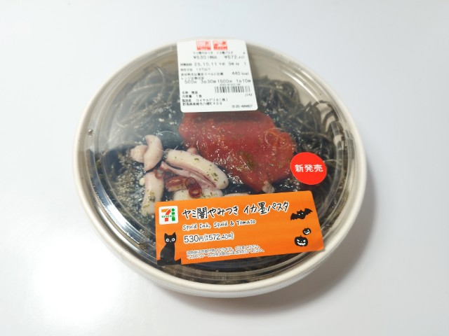 セブンイレブンの今週の新商品「ヤミ闇やみつき イカ墨パスタ」を食べてみました。
