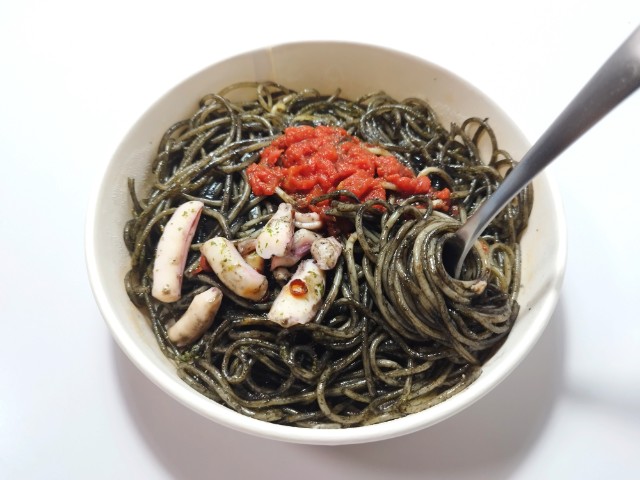 ヤミ闇やみつきイカ墨パスタを美味しくいただきますっ!!
