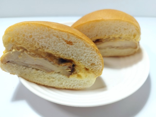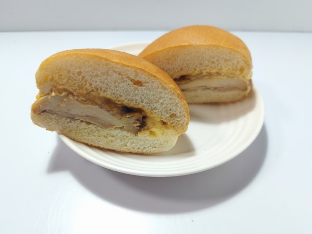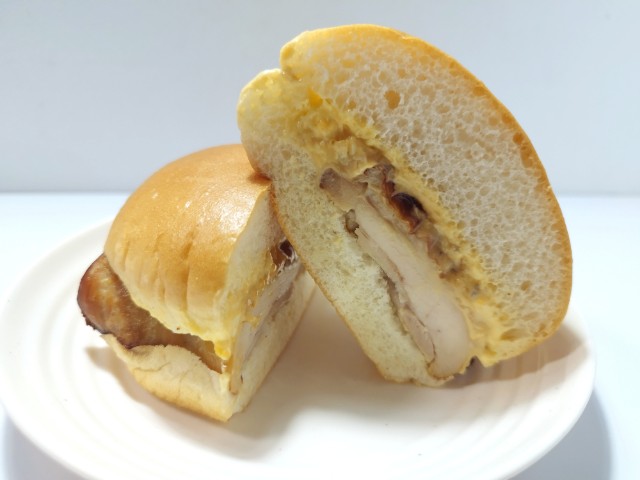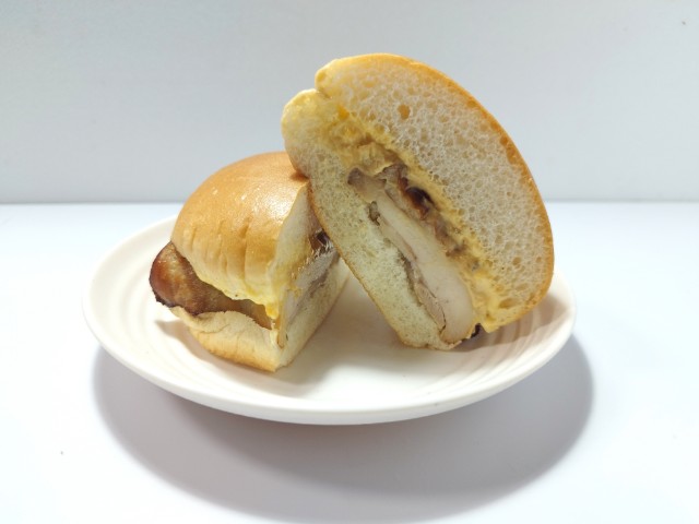 タルタルソースを合わせたチキンバーガーです。タルタルソースとローストチキンを使ったチキンバーガーで、その味が気になって買ってみました。そんなタルタルチキンバーガーですが、バンズはふっくらとした食感と歯切れの良さがあって、安定の美味しさです。メインのローストチキンは肉の旨味とほどよい弾力、ジューシーな味わいで、食べ応え抜群です。タルタルソースはたまごの甘味と玉ねぎの食感、ピクルスの酸味があって、ローストチキンともよく合います。大きさは普通のハンバーガーサイズで、おやつや小腹が空いた時にピッタリです。ぜひタルタルチキンバーガーを食べてみて下さい。