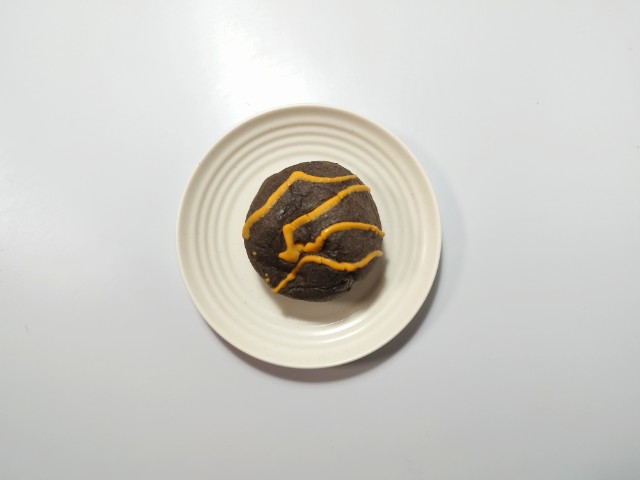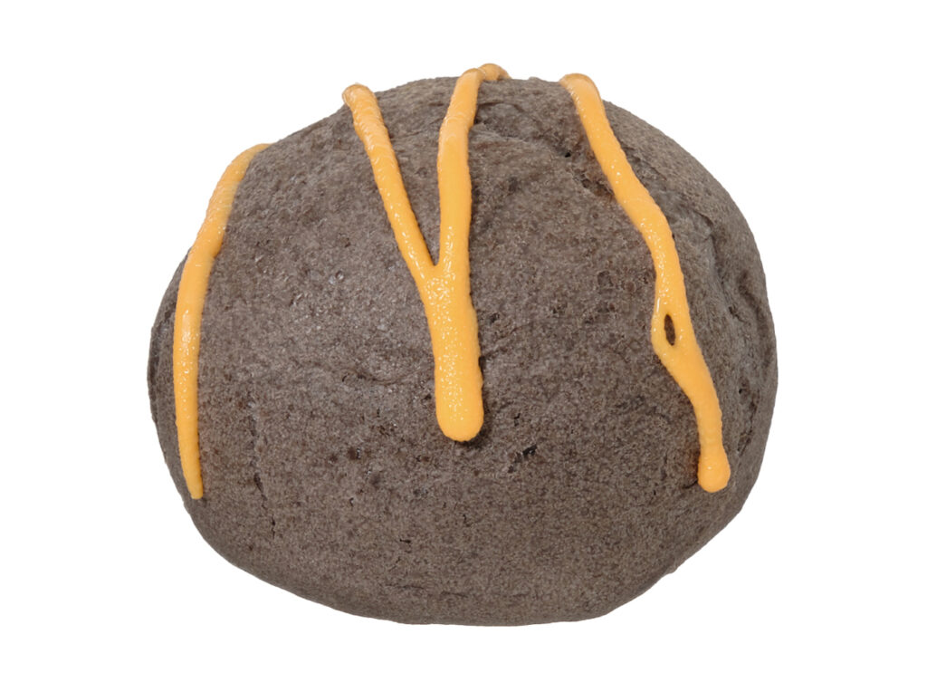 黒色のもちもちした食感のもこ生地にかぼちゃペーストを使用したクリームを詰め、オレンジ色のチョコを線掛けしたハロウィンを感じさせるシュークリームです。
