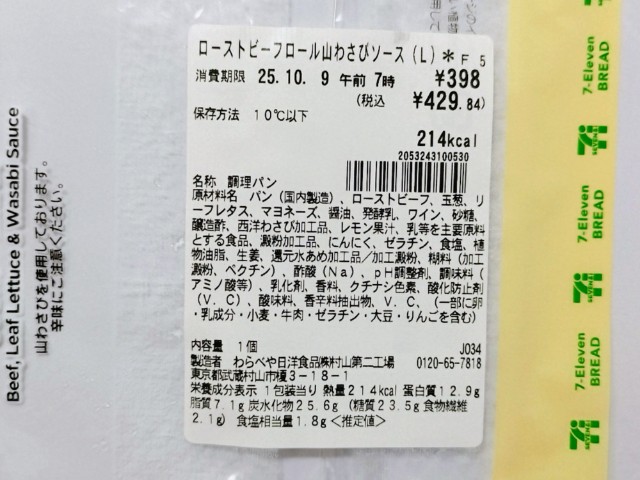 セブンイレブンの今週の新商品「ローストビーフロール 山わさびソース」を食べてみました。