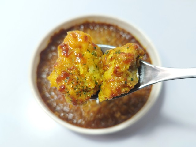 オーベルジーヌ監修のチキン焼カレーです。ローソンからロケ弁でもおなじみのオーベルジーヌが監修した商品として、今回のチキン焼きカレーとオーベルジーヌ監修 欧風チキンカレー(2025年10月7日発売)、オーベルジーヌ監修 カレーまん(2025年10月7日発売)の3種類が発売されています。そんなチキン焼カレーですが、肉の旨味と野菜の甘味、後からジワジワとやってくるスパイシーな辛味で、クセになってしまう美味しさです。トッピングのチキンは鶏の旨味としっとりとした食感で、カレーとの相性も良いです。出来立ては激熱なので注意が必要ですが、熱い内に食べるのがオススメです。ぜひチキン焼カレーを食べてみて下さい。