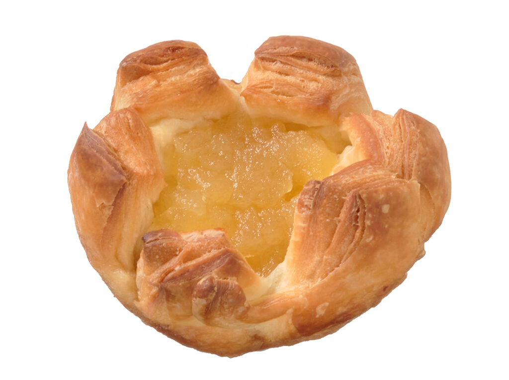 甘酸っぱいりんごのコンポートを歯切れの良いデニッシュ生地に乗せて焼き上げ、底面をキャラメリゼさせたスイーツのように楽しめる商品です。