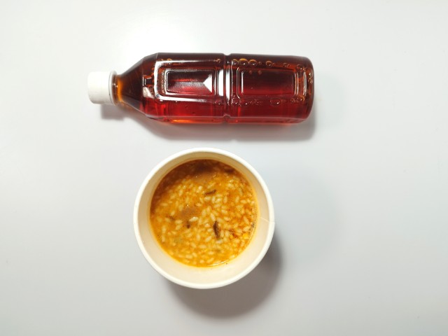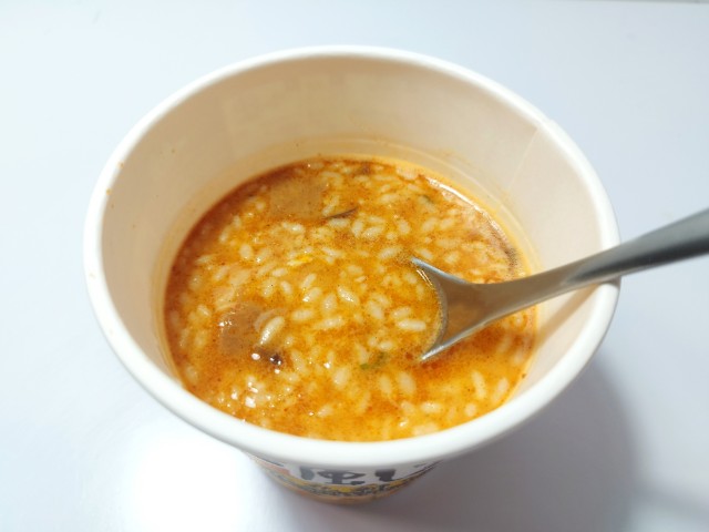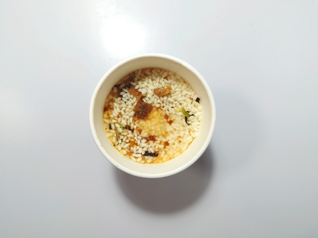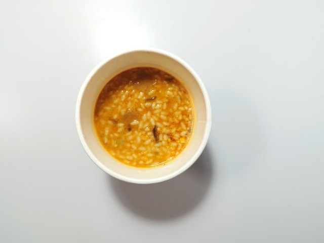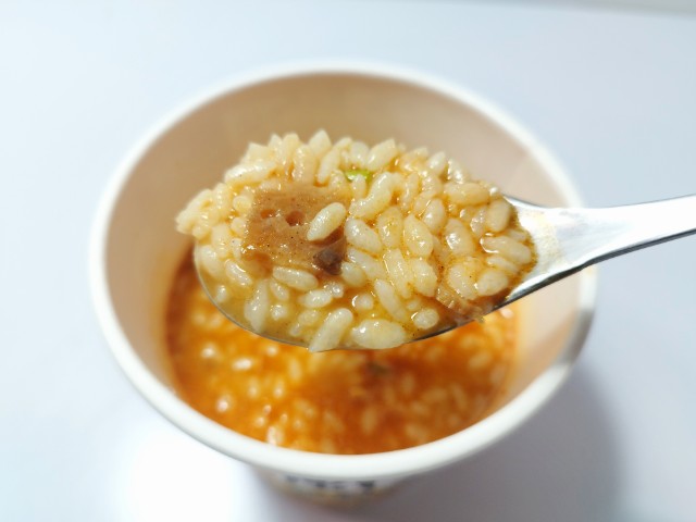 一風堂メシの赤丸新味です。セブンプレミアム有名店ラーメンシリーズ25周年を記念して一風堂とコラボした新商品となっています。そんな一風堂メシですが、スープは豚の旨味と辛味噌のピリッとした辛味、にんにくの風味があって、間違いのない美味しさです。ご飯はスープをしっかりと吸っていて、ひと口食べるごとに旨味が溢れてきます。具材には味付豚肉、きくらげ、ねぎなどが入っていて、それぞれの味や食感を楽しめます。内容量は一人分にちょうどよく、小腹が空いた時や今回同時発売された7プレミアム 一風堂 白丸元味(2025年10月7日発売)に合わせてもピッタリだと思います。ぜひ一風堂メシの赤丸新味を食べてみて下さい。