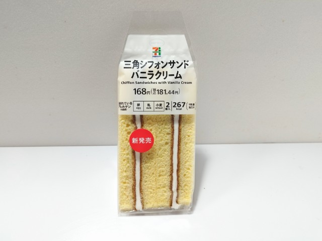 セブンイレブンの今週の新商品「7P三角シフォンサンドバニラクリーム 2個入」を食べてみました。