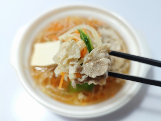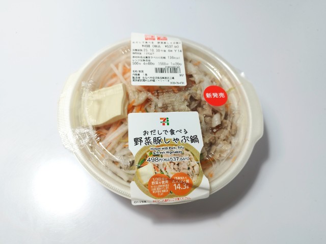 セブンイレブンの今週の新商品「おだしで食べる 野菜豚しゃぶ鍋」を食べてみました。