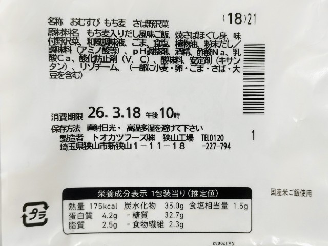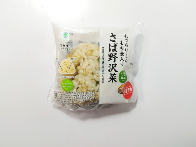 ファミリーマートの商品「もち麦 さば野沢菜」を食べてみました。